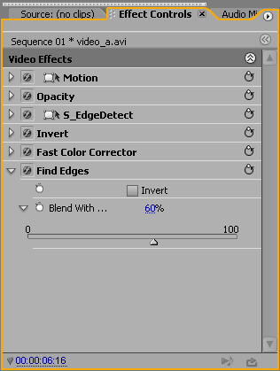 Выберите в палитре Effects в разделе Video Effects строку Sapphire Stylize>S_EdgeDetect.
