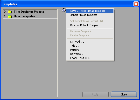 Для подтверждения внесенных изменений нажмите в окне Templates кнопку Apply.