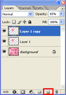 Снимите выделение слоя, нажав комбинацию клавиш Ctrl+D. В палитре слоев у слоя Layer 1 уменьшите прозрачность до 65%.