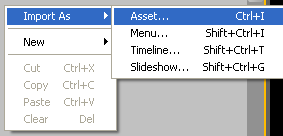 Для создания фона меню из видеоролика, экспортированного ранее, нажмите правую кнопку мыши в палитре Project и выберите Import As>Asset (Ctrl+I).