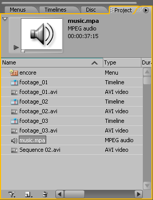 Если файлы соответствуют требованиям, предъявляемым программой к медиафайлам, через некоторое время в палитре Project появятся импортированные файлы и автоматически создавшиеся одноименные таймлинии.