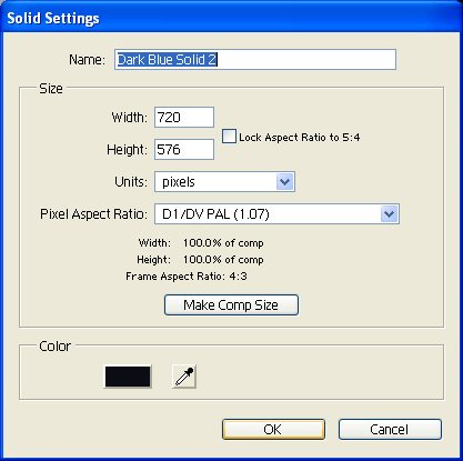 В окне Solid Settings нажмите кнопку Make Comp Size, а затем ОК.
