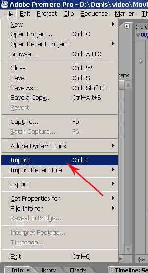 Запускаем Premiere, создаем новый проект и импортируем в него наши файлы.