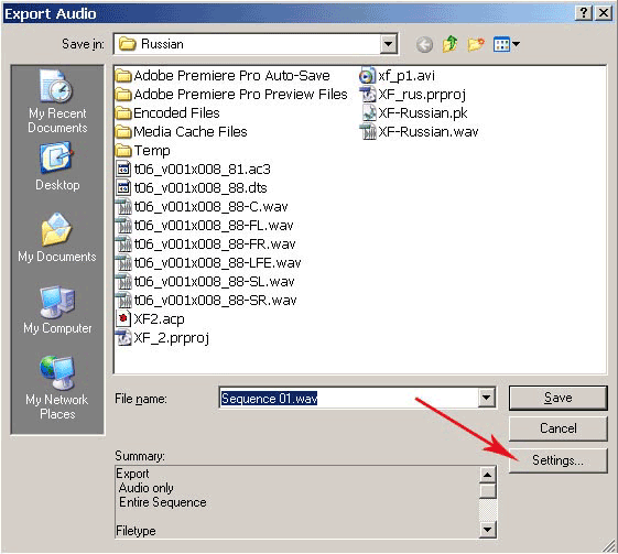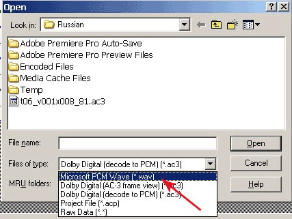 Перед тем, как мы начнем работу над русской дорожкой, нам нужно подготовить весь материал. Файл центрального канала у нас уже есть. Теперь нам нужно подготовить перевод. Для работы в Premiere лучше всего будет, если все наши аудиофайлы будут в формате WAV. Если перевод фильма у вас в формате MP3, то его нужно перевести в формат WAV. Если центральный канал фильма вы получили с помощью программы Sonic Foundry Soft Encode, то полученный файл будет в формате PCM, его тоже нужно преобразовать в WAV. Подробно описывать данный процесс мы не станем — уверены, что эта задача не вызовет у вас проблем. Мы для этого использовали программу Adobe Audition.
