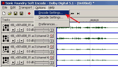 Выбираем файл нового центрального канала, нажимаем Open. В проект загружается файл. Теперь все готово к кодированию, но для начала выставим некоторые параметры, выполните команду Options-Encode Settings…