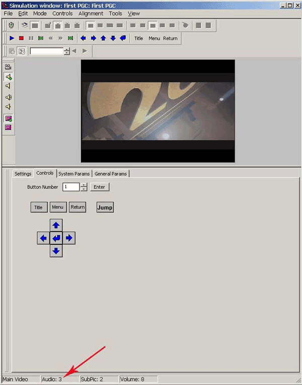 Проверку диска осуществим с помощью Simulation Window. Щелкните на панели инструментов по кнопке Simulation Window (рис. 45, п.7), появится окно симуляции DVD плеера, в котором мы и проверим работоспособность диска: