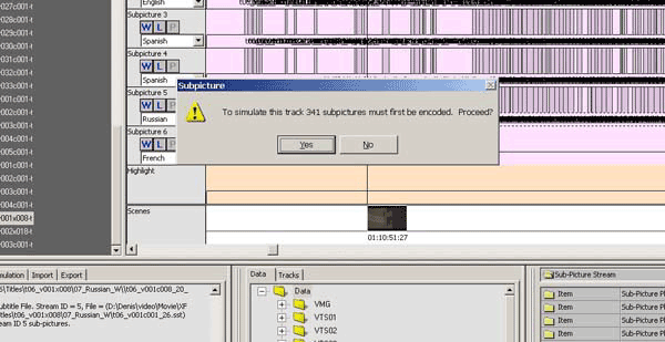 Итак, проверим, что же у нас получилось. Открываем окно Simulation Window и запускаем воспроизведение. Перед началом воспроизведения программа предложит нам откомпилировать новые субтитры. Соглашаемся с этим предложением, нажав кнопку Yes.