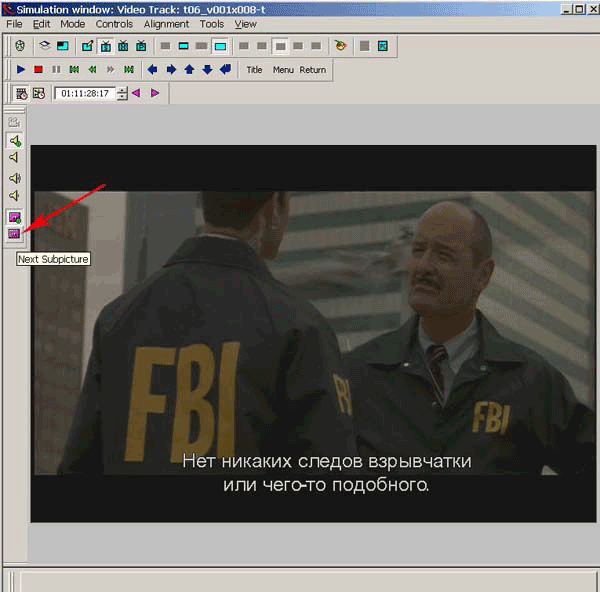 Запустив воспроизведение, нажмем несколько раз кнопку Next Subpicture до тех пор, пока активной не станет пятая дорожка субтитров (рис. 69), после чего мы с вами сможем увидеть субтитры на русском языке.