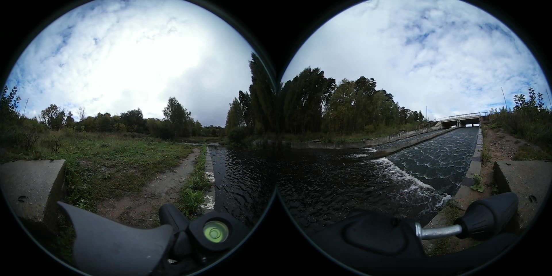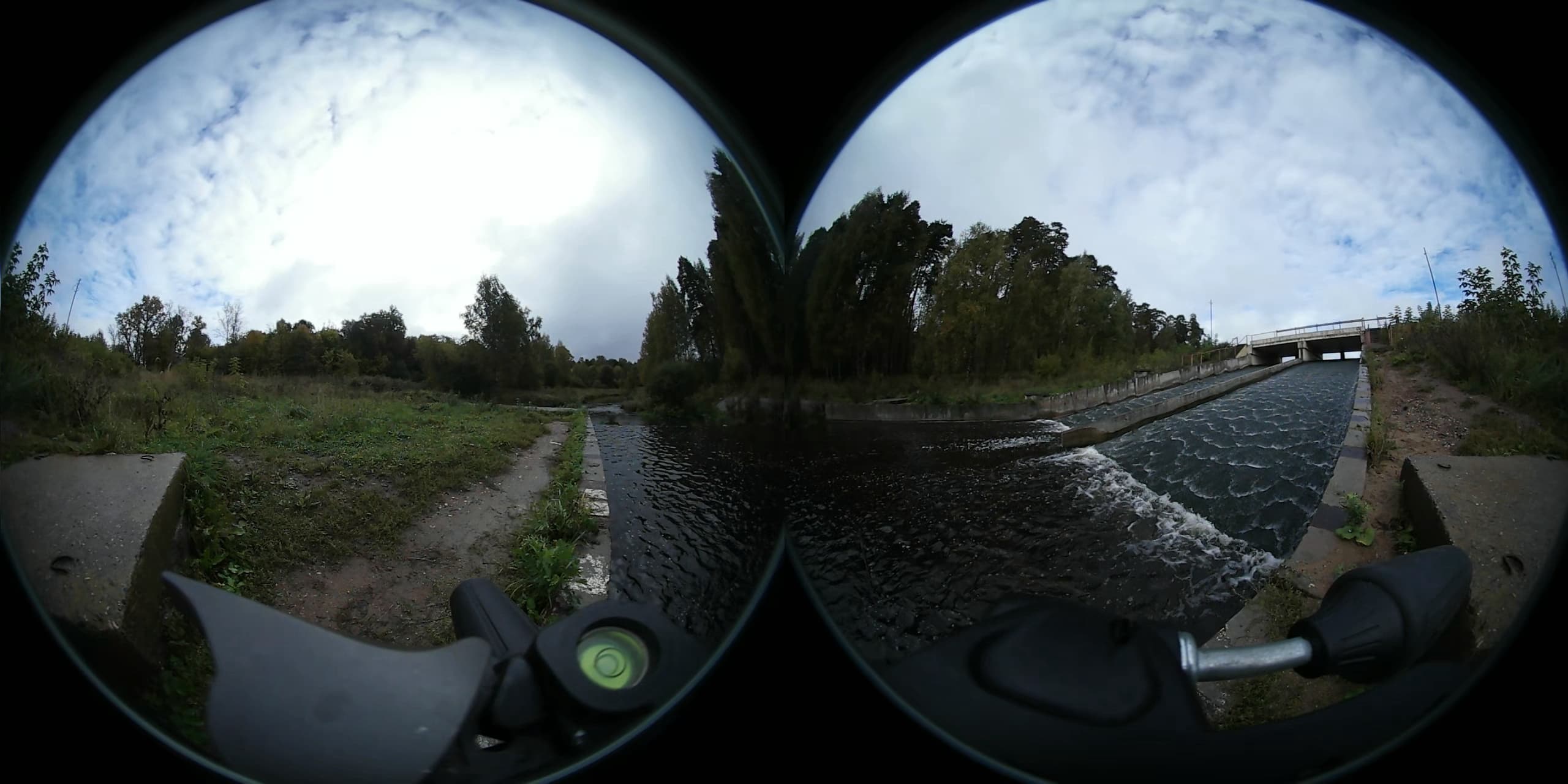 Изучать качество сжатия рассматриваемой камерой можно было бы всерьез, если бы не один фактор, а именно — геометрические искажения. Которые скрадывают не только недостатки, но и, к сожалению, большую часть достоинств. Две полусферы на черном фоне — не так уж и много битрейта требуется, чтобы закодировать такую картинку с достаточно высоким качеством. Тем более, используя для этого новый высокоэффективный кодек HEVC, он же H.265. Ниже приведены участки стоп-кадров, взятых из видеозаписей бегущей воды: явных огрехов кодировщика не имеется, выраженной пикселизации не наблюдается. Впрочем, это и немудрено в силу все той же сверхширокоугольности объективов: широкая полоса воды занимает лишь малую часть кадра, а вся остальная площадь — статика, не требующая серьезного битрейта.