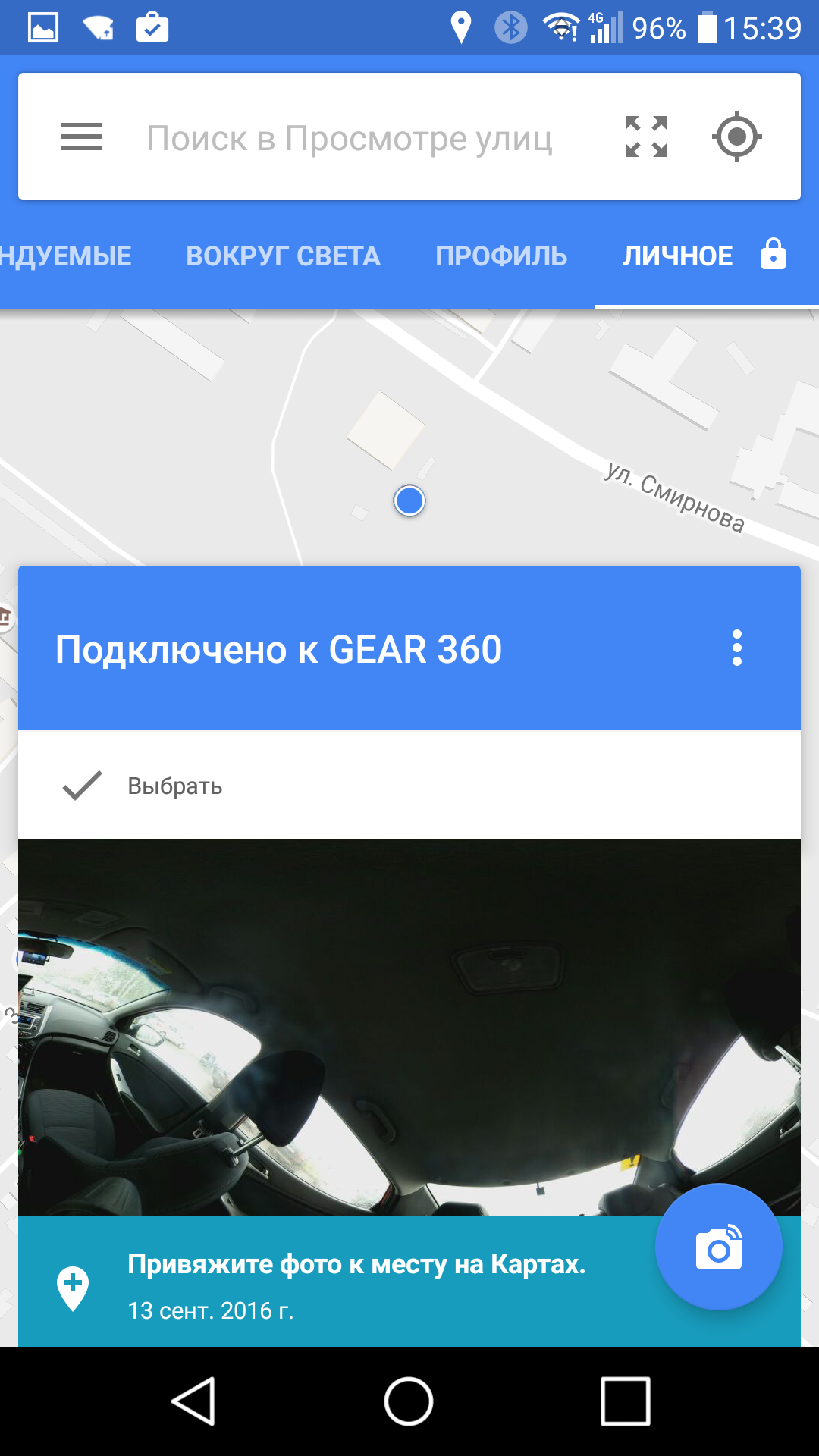 Единственная функция, когда смартфон, не входящий в список избранных, может нам понадобиться — это режим Google Street View. Как совершается подключение к камере, можно увидеть в следующем ролике.