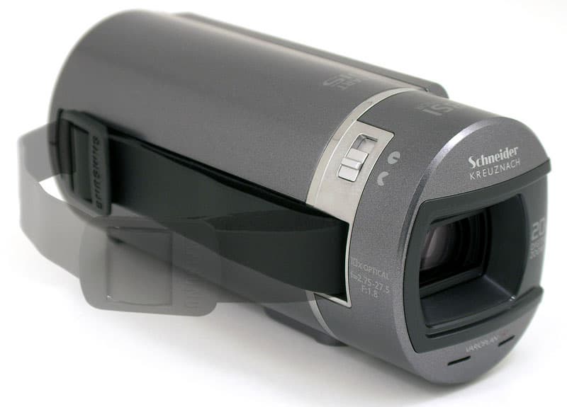 «Это просто праздник какой-то!» — говаривал в подобных случаях известный сказочный персонаж. Мгновенно представляется умная техника, имеющая датчик, определяющий направление взгляда оператора. Нет, до такого совершенства нынешняя бытовая техника ещё, похоже, не дошла. На поверку всё оказалось стократ проще (но от этого не менее оригинально). Благодаря нестандартному дизайну рассматриваемой видеокамеры, пользователь имеет возможность вести съёмку, удерживая аппарат как в правой, так и в левой руке. Несмотря на такой переворот, получившаяся видеозапись будет иметь «правильную» ориентацию. По всей видимости, в компании Samsung накопился критический процент инженеров-левшей, которые заявили о себе вот такой очередной оригинальной разработкой.