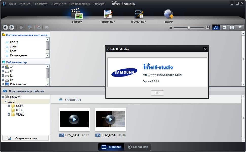 Данная программа представляет собой несложный видеоредактор, работа в котором подробно описывалась в прежних обзорах видеокамер Samsung, имеющих такое же встроенное программное обеспечение.