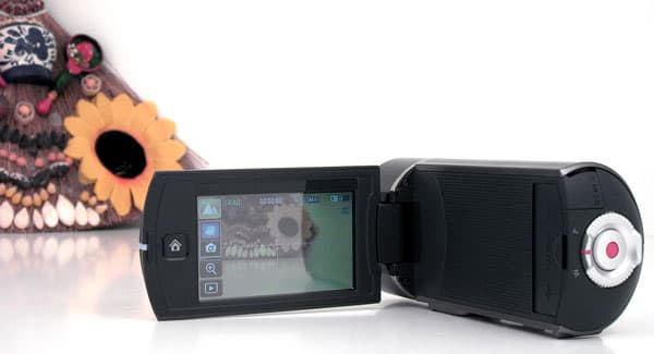 Сенсорный ЖК-экран оснащён дополнительной механической кнопкой, вызывающей главное меню. Все до единой настройки производятся исключительно с помощью навигации по меню (ну разумеется, мы же только что убедились в полном отсутствии каких-либо кнопок). Перевод камеры из режима камкордера в режимы фотоаппарата или плеера производятся точно так же, через сенсорное общение с экранным меню.