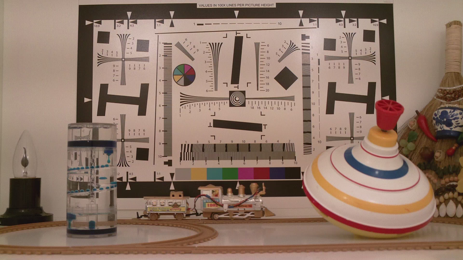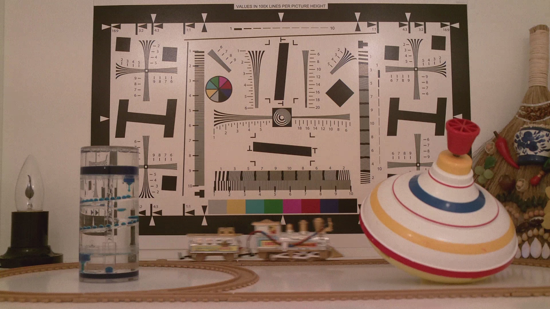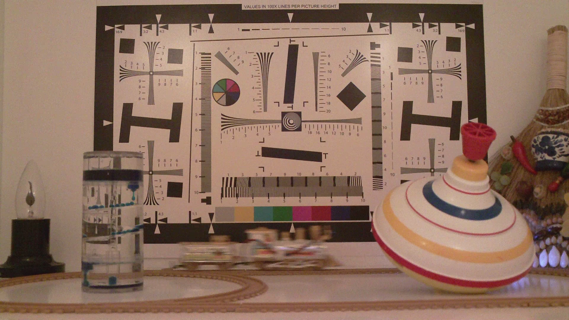 Данное тестирование проводится согласно опубликованной методике в целях установления чувствительности видеокамеры в данных условиях, а также для определения относительной чёткости даваемой картинки; результаты этих тестов аккумулируются на сравнительной странице.