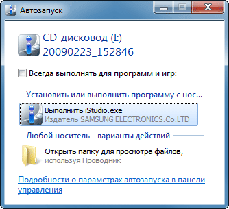 Вместо того, чтобы комплектовать видеокамеру компакт-диском с ПО, SAMSUNG предлагает иной вариант: всё своё ношу с собой. Программа, с помощью которой пользователь может обработать снятое им видео, находится в памяти видеокамеры (во встроенной нестираемой памяти). При этом данный носитель снабжён обыкновенным "автораном", благодаря которому программу можно запустить сразу после подключения камеры к ПК по USB.