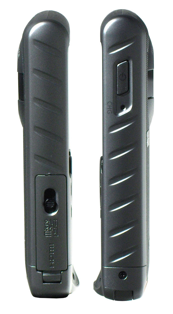 На другом боку имеется кнопка включения/отключения камеры, и светодиод, сигнализирующий о процессе зарядки батареи. Боковые поверхности испещрены насечками-рёбрами, которые не позволяют камере выскользнуть из ладони. В самом низу корпуса имеется закруглённый выступ, в котором расположено ушко для продевания шнурка. Это выступающее ушко играет ещё одну роль: благодаря такому выступу уменьшается риск поцарапать стекло ЖК-экрана, когда камера лежит на какой-либо поверхности экраном вниз.
