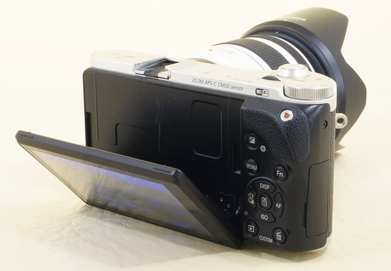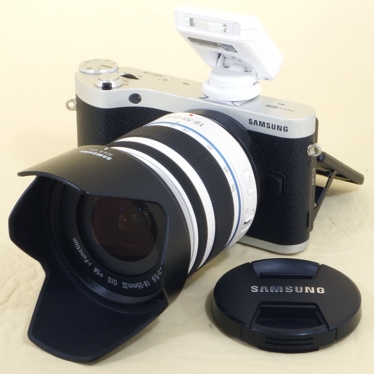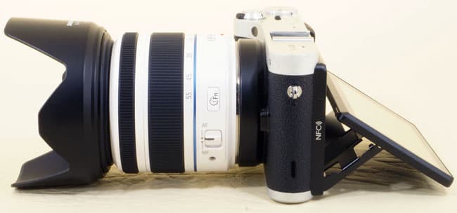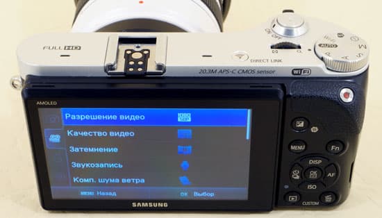 Предоставленный для тестирования фотоаппарат был укомплектован объективом Samsung 18—55 мм F3,5—5,6 OIS III, имеющим оптический стабилизатор.