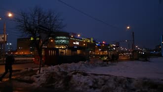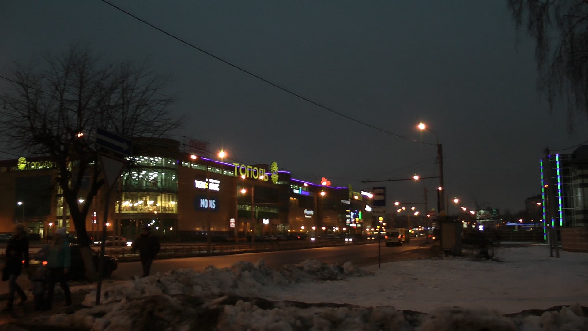 Фотоаппаратное видео и здесь выглядит значительно симпатичней видеокамерного, однако откуда взялось глубокое синее небо? В действительности оно было именно таким, каким показывает его видеокамера, снимающая при ручных настройках: низким, плотным, подсвеченным уличными ртутными лампами. Как бы то ни было, а глаз «тянется» к фотоаппаратному видео. Красиво же.