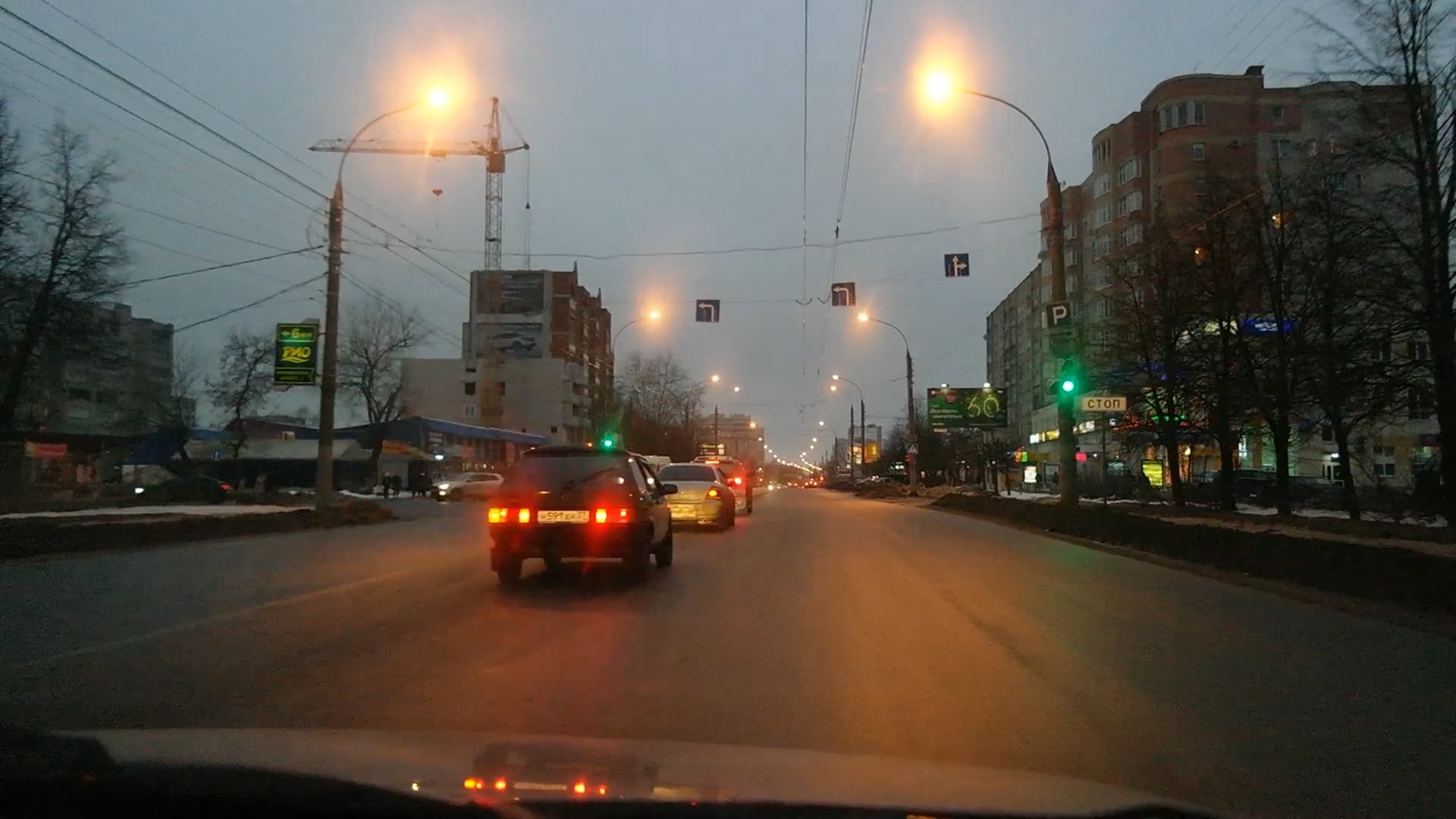 Еще более усложним задачу, перейдя в условия нехватки света. Для этого неплохо подойдет вечернее шоссе с фонарями и прочими элементами цивилизации. Съемка проводилась дважды, с автоматическими и ручными настройками (выбиралась предустановка, наиболее подходящая к данным условиям — «Ночь», «Свеча» и т. п.).