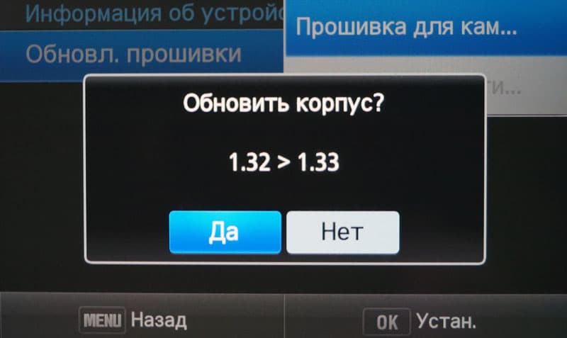 Перед тестированием было проведено обновление прошивки аппарата до версии 1.33, это делается просто, достаточно поместить на карту памяти файл прошивки и воспользоваться служебным меню фотоаппарата.