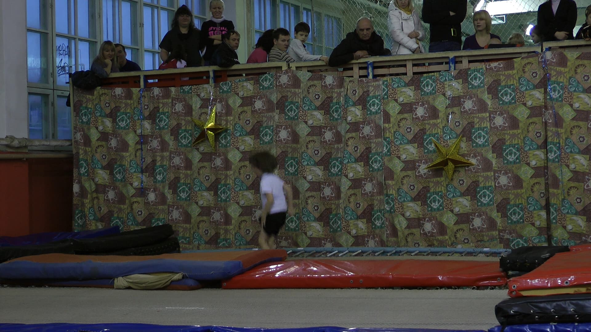 Усложним задачу. Проведем съемку в условиях, когда пользователь уповает на фотоаппарат, потенциально имеющий более высокую чувствительность. Речь о недостаточной освещенности. Вновь сравним способности рассматриваемого аппарата и видеокамеры, сделав поочередную съемку с рук (без штатива) в спортивном зале с искусственным освещением. В первом случае съемка производилась с полностью автоматическими настройками, во втором использовалась нужная предустановка баланса белого.