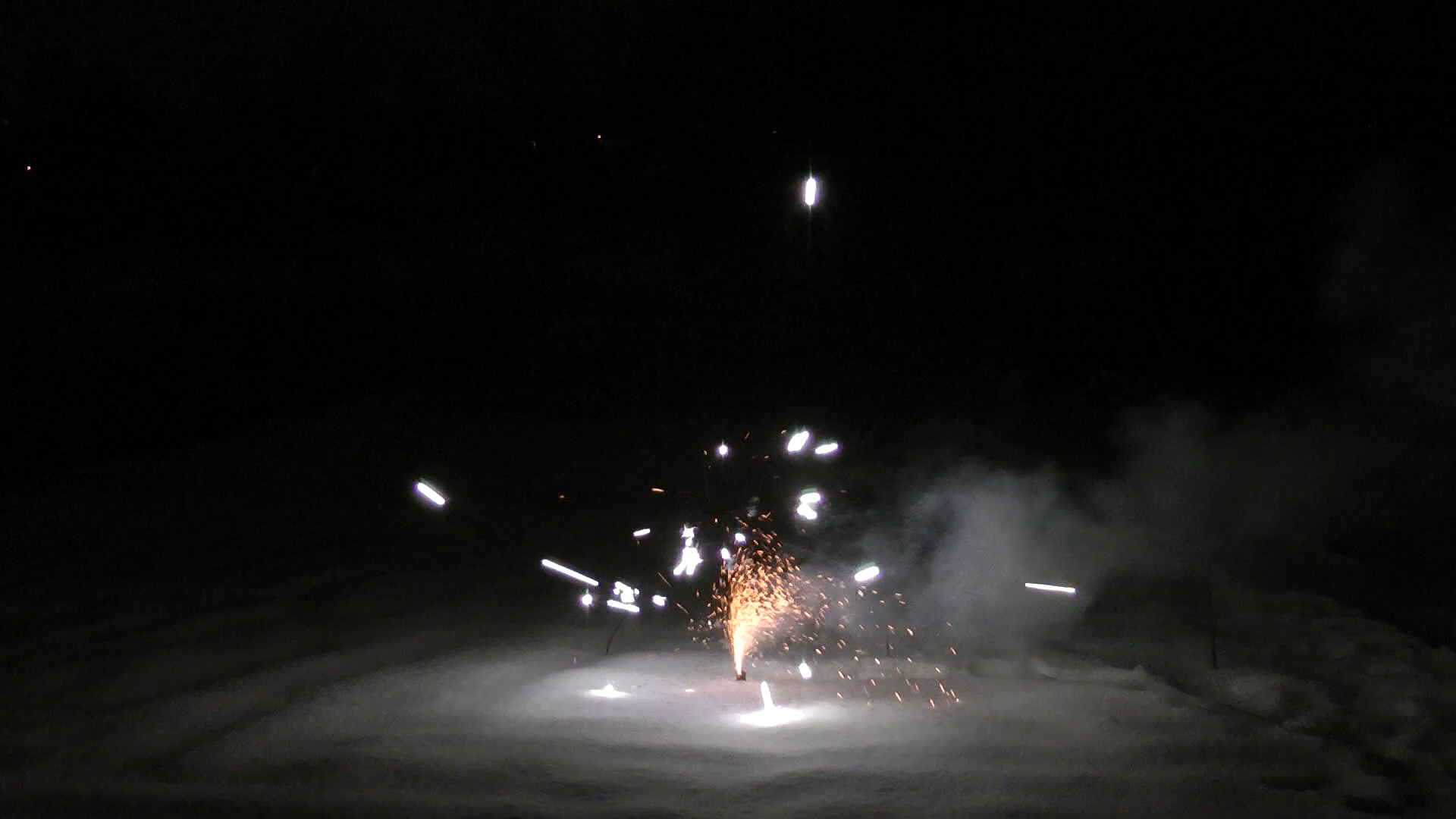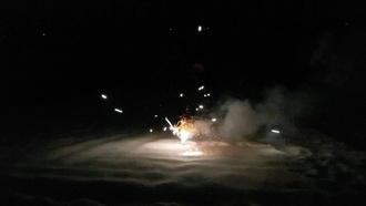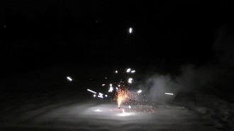 Крепко же фотоаппарат влип! В автоматическом режиме его автофокус никак не мог понять, куда же ему целиться — все так непонятно и быстро мелькает и сверкает... Зато при съемке с предустановкой «Фейерверк» — совершенно другое дело. А оператору впредь наука: к подобным сценам надо готовиться заранее, выбрав нужную предустановку. Видеокамера оказалась сметливее — в обоих случаях она, не моргнув диафрагмой, цепко держала фокус на фонтанчике искр. Что касается цвета... Ну да. В который раз, вполне ожидаемо, фотоаппарату достается первое место за красочное запечатление момента.