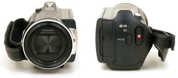 На задней стенке корпуса расположены всего лишь две кнопки: REC, включающая запись, и кнопка MODE, переключающая камеру из режима камкордера в режим плеера. Цветные индикаторы выбранных режимов расположены чуть выше.