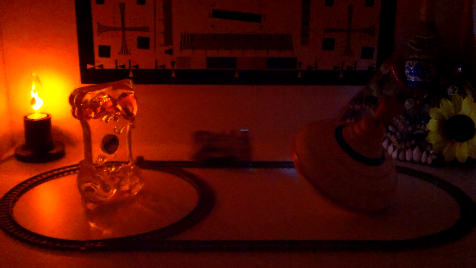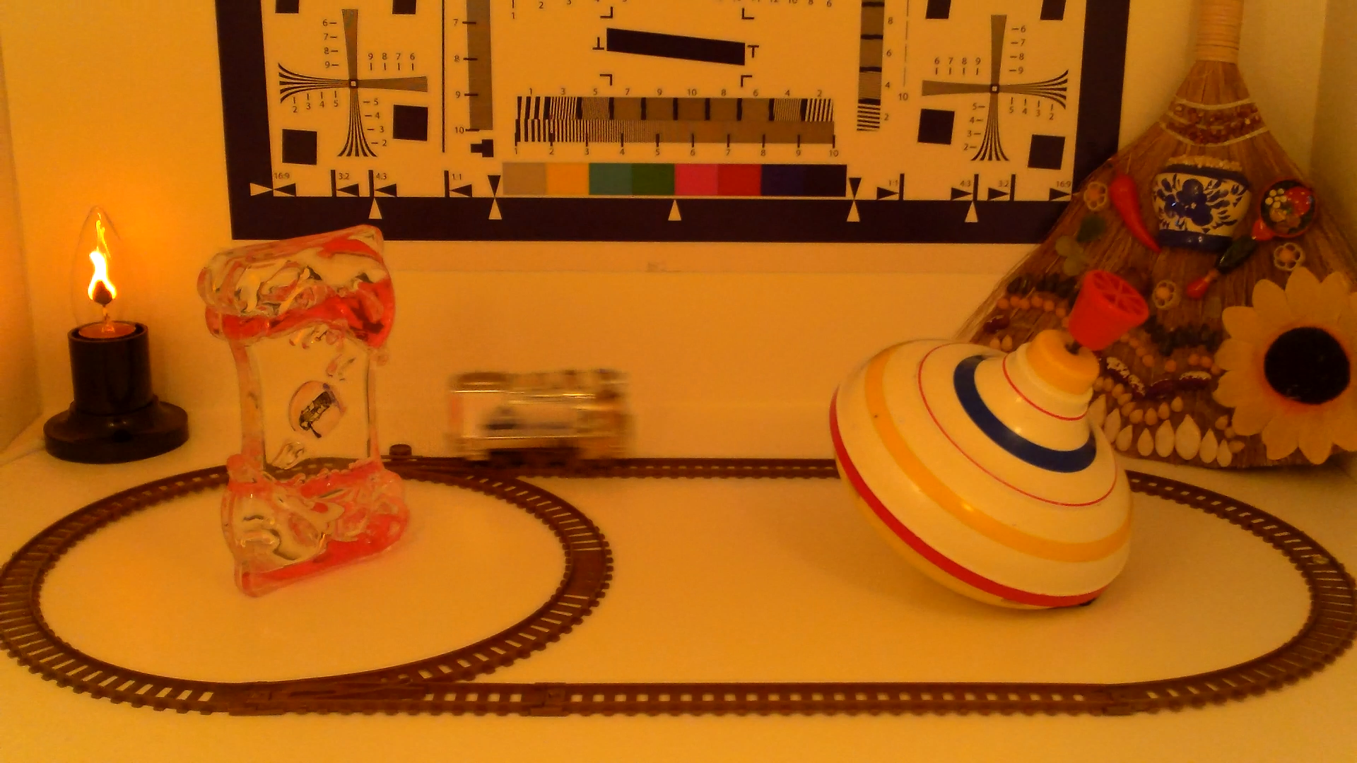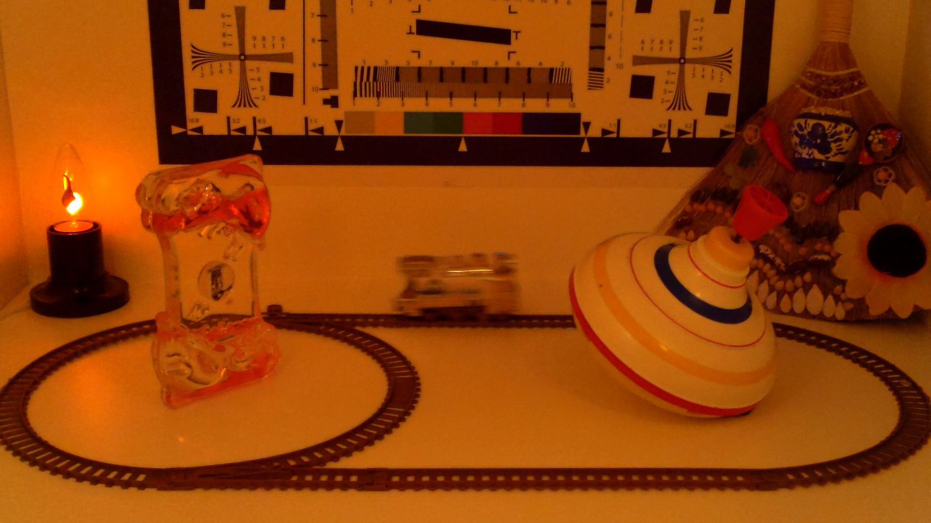 Да, автоматический баланс белого явно не справляется со съёмкой под светом ламп накаливания. Если же выставить ББ вручную, выбрав соответствующую установку, то цвет может исказиться ещё сильнее — пусть уж лучше будет то, что есть, жёлто-красное. Так более естественно. Практика показала, что съёмка в почти полной темноте выглядит вполне достойно за счёт низкого уровня шума. Правда, и детализация страдает — но уж тут ничего не поделаешь. Разрешающая способность камеры составляет около 800-900 линий, это прекрасный результат для миниатюрного гаджета.