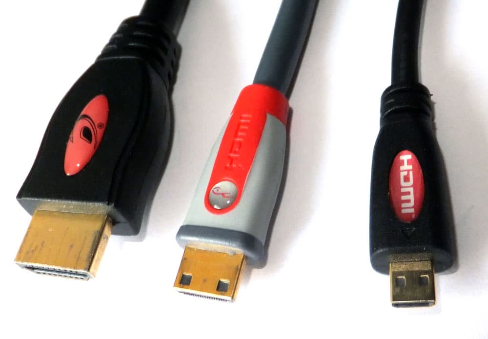 Да, нам пришлось подождать почти два месяца, пока доблестная российская почта доставит заказанный на Ebay нужный шнурок (в наших магазинах о таком разъёме попросту не слыхивали). На следующем снимке слева направо приведены: HDMI, mini HDMI и micro HDMI.