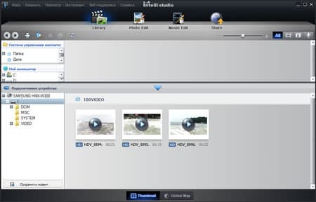 Камера снабжена встроенной памятью, недоступной для пользователя — в неё записана портативная версия программы Intelli Studio. Этот несложный видеоредактор позволяет быстро смонтировать нехитрый фильм или ролик и «залить» его на один из популярных веб-сервисов. К сожалению, программа всегда перекодирует видео, поэтому для простой резки-склейки с сохранением исходного качества придётся воспользоваться другими, сторонними программами.
