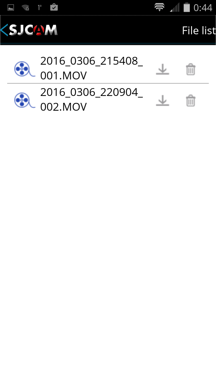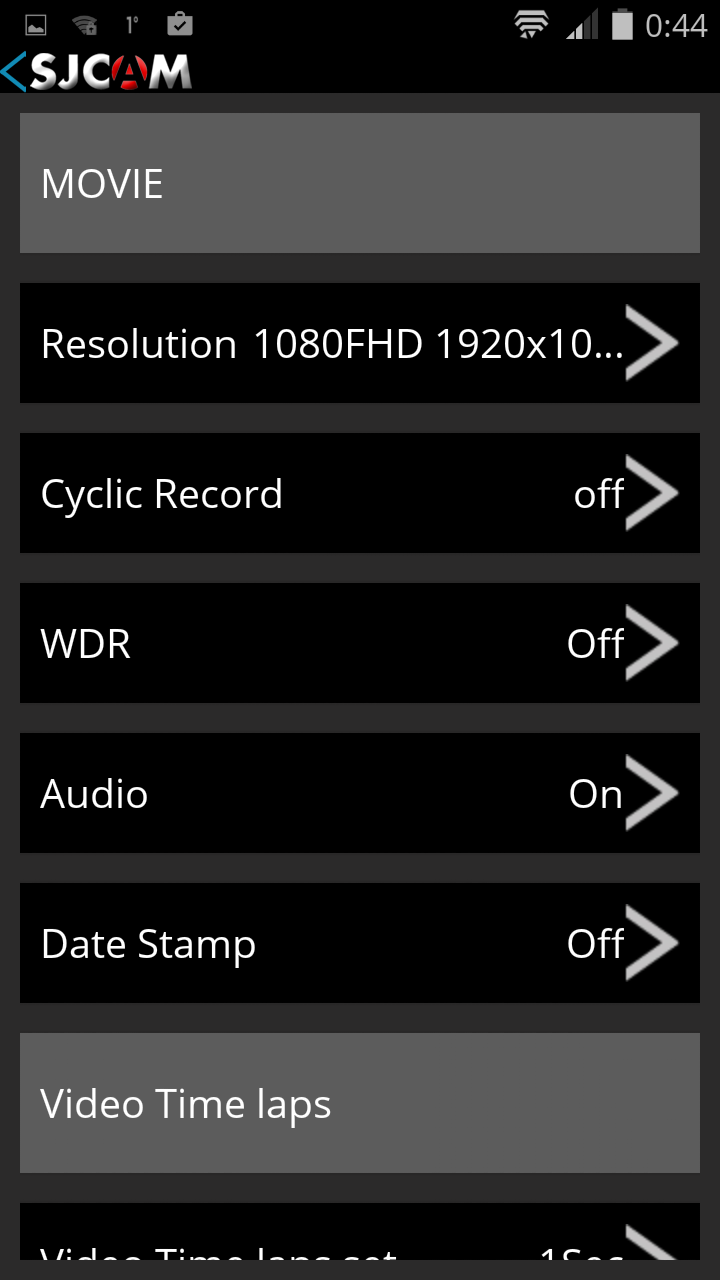 Управление камерами по Wi-Fi производится с помощью одного и того же приложения, SJCam HD (версия для Android). Интерфейсы приложения не имеет перевода на русский язык, зато несложен в освоении.