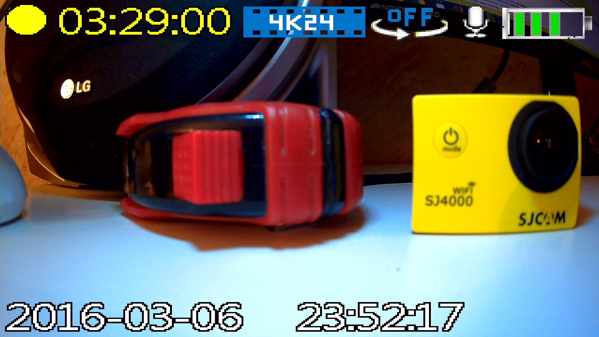 Таким образом, для камеры SJ5000 мы отыскали два приоритетных режима записи: псевдо-4K с размером 2880×2160 с частотой 24 кадра в секунду, либо 1920×1080 с частотой 60 кадров в секунду. Учитывая, что все-таки максимальный размер кадра в этой камере составляет упомянутый псевдо-4K, то и снимать впоследствии мы станем именно в таком режиме. Тем же пользователям, которым важна высокая плавность движения, рекомендуется переключить камеру в 1080 60p и начисто забыть о других режимах.