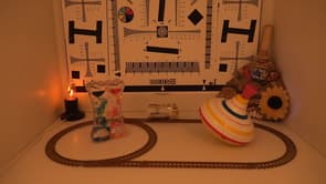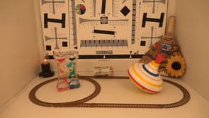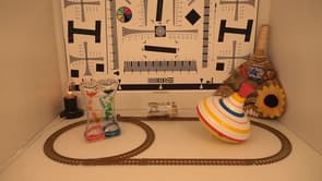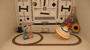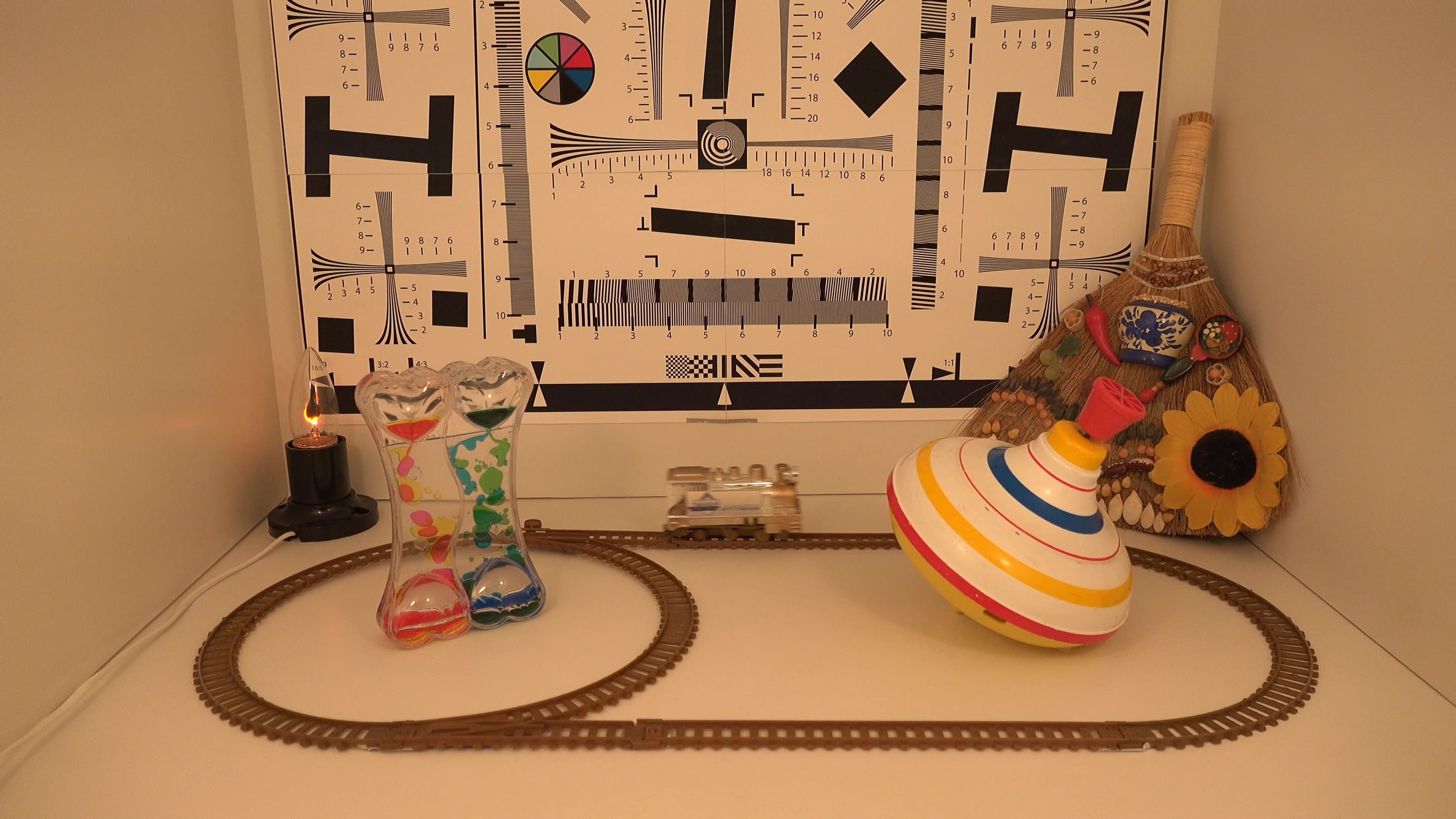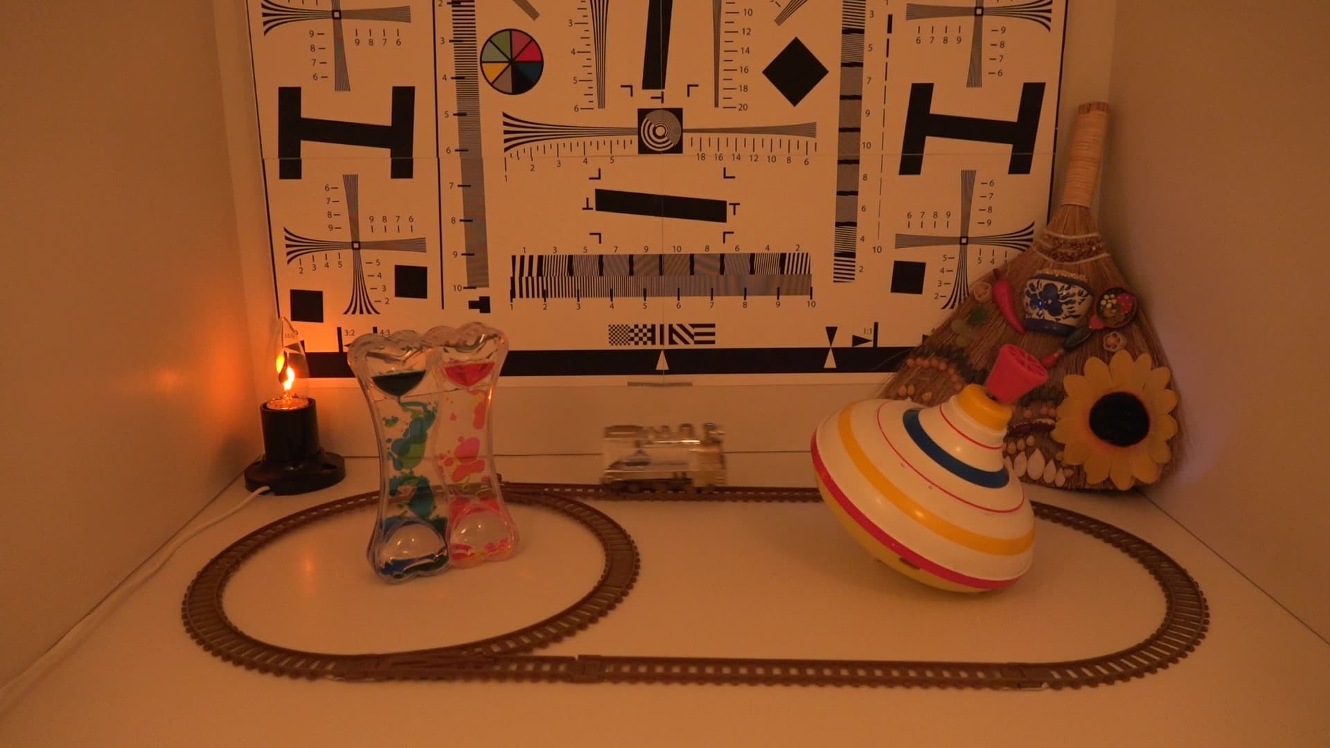 При видеозаписи в режиме 4K 25p камера допускает наклон вертикали в 9,1°. Это очень большой, пока что рекордный, результат (впрочем, мы не так уж много тестировали 4K-камеры, чтобы спешить с выводами). Режим с размером 1280×720 и частотой 100 прогрессивных кадров в секунду показывает снижение наклона до 2,9°. В камере также имеется фирменный режим скоростной записи, когда аппарат запечатлевает три секунды реального времени, растягивая его в получившемся ролике до 12 секунд. Съемка нашего вращающегося стенда в данном режиме показывает десятикратное снижение наклона вертикалей, до 0,96°. Это свидетельствует о реально высокой частоте опроса матрицы при съемке в таком режиме, что также косвенно подтверждается серьезным снижением чувствительности и разрешающей способности камеры при такой съемке (о скоростной съемке расскажем позже).
