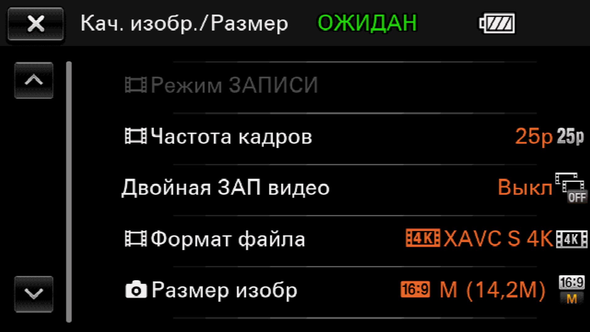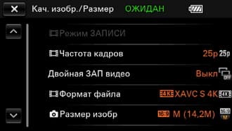 | XAVC-S 3840×2160 25p до 60 Мбит/с | XAVC-S 1920×1080 50p до 60 Мбит/с |