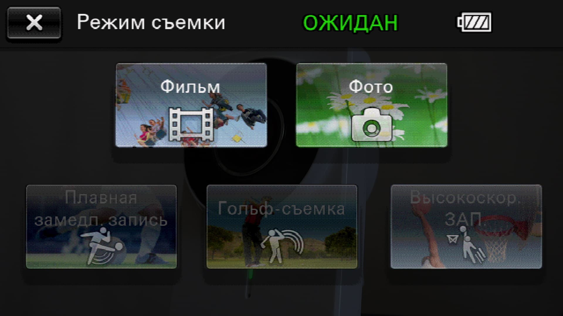 | AVCHD FX: 1920×1080 50i до 24 Мбит/с | AVCHD FH: 1920×1080 50i до 18 Мбит/с |