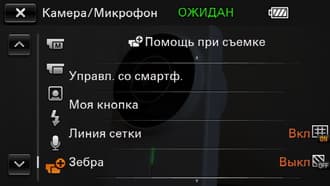 - кнопка включения режима фильтрации звуков, источник которых расположен со стороны видоискателя (уменьшение звуков «жизнедеятельности» оператора — сопение, восклицания и т.д.)