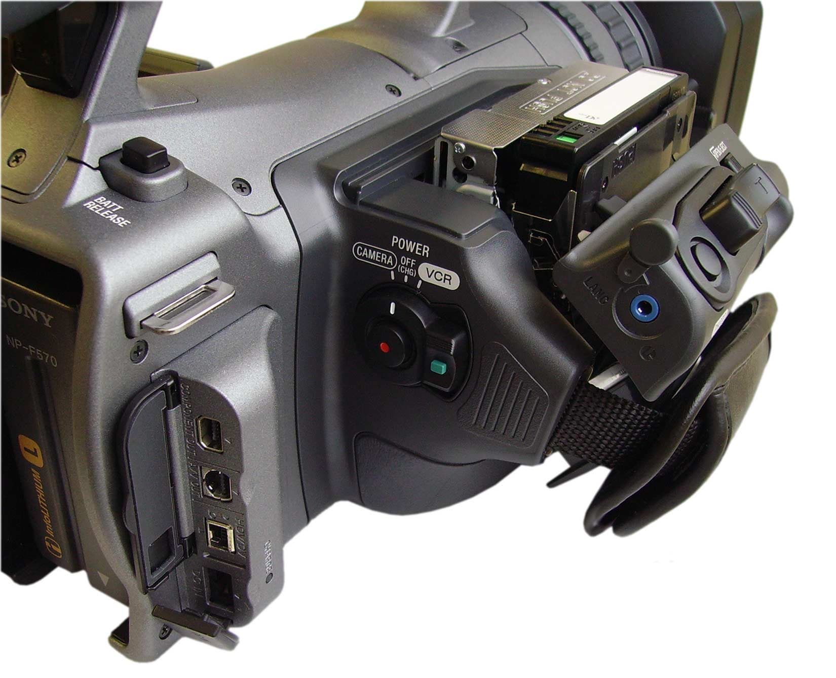 Конструкторы неплохо потрудились, продублировав органы управления и расположив их на ручке. Кнопка старта записи и управления зумом — все, что требуется опытному оператору, который заранее произвел все необходимые настройки. А неприметный с виду рычажок, находящийся на боковой стороне ручки, регулирует скорость срабатывания трансфокатора либо отключает эту функцию. Чуть ниже площадки для крепления аксессуаров расположен вход для подключения внешнего монофонического микрофона (встроенный микрофон при этом отключается).