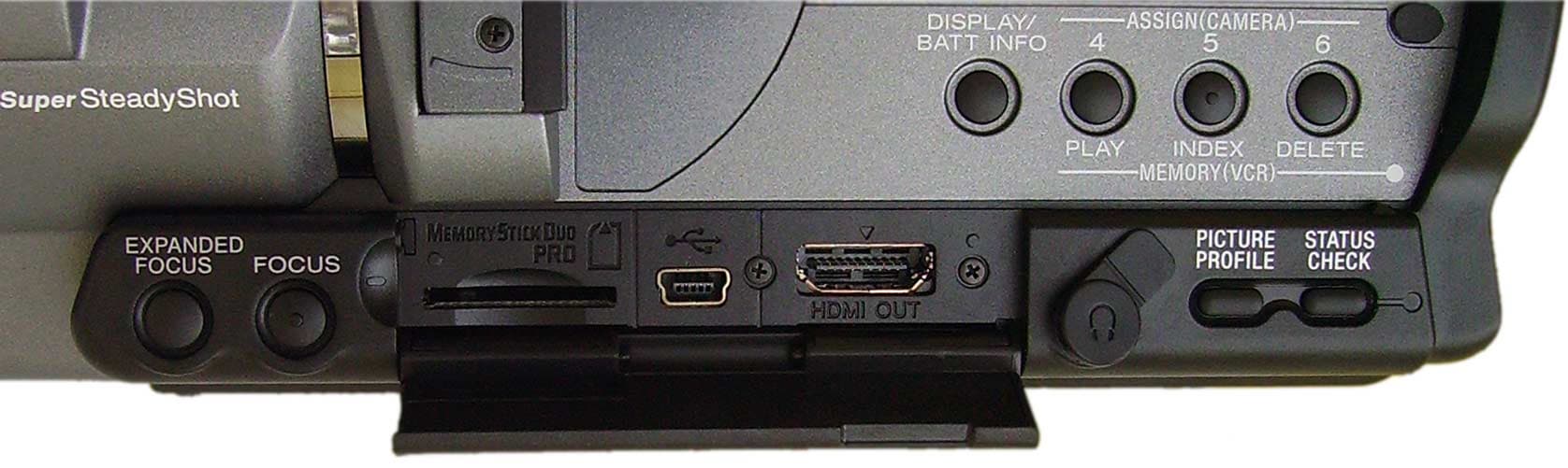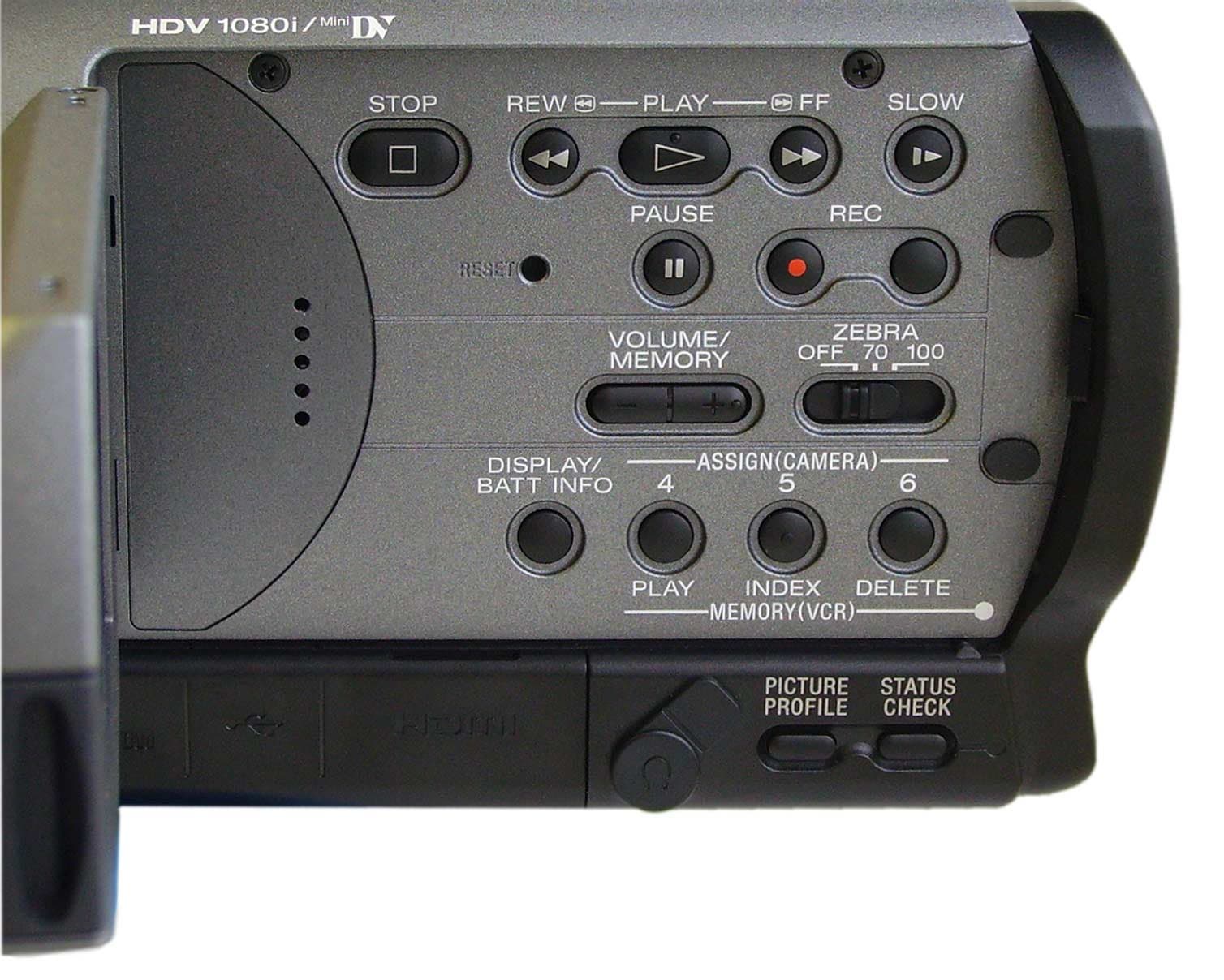 В нижнюю часть корпуса аппарата конструкторы вместили кнопки быстрого вызова настройки фокуса, аудиовыход на наушники (работающий в реальном времени) и еще две кнопки: PICTURE PROFILE и STATUS CHECK. Первая кнопка вызывает диалог, где можно выбрать один из шести хранящихся в памяти камеры профилей съемки (PORTRAIT, CINEMA, SUNSET, MONOTONE и два профиля, задающихся пользователем самостоятельно), а кнопка STATUS CHECK выводит на экран наименование текущего профиля.