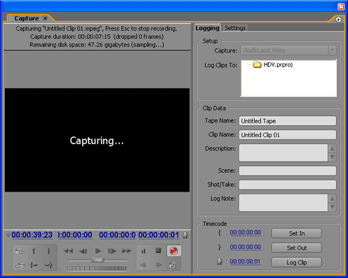 Никаких проблем, камера беспрекословно подчиняется командам, подаваемым с виртуального пульта управления, только... Изображение во время захвата — отсутствует! Лишь лаконичная надпись Capturing, мелькающие цифры тайм-кода, да мигание индикатора обращения к винчестеру свидетельствуют о том, что компьютер в данный момент занят захватом.