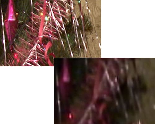 Данный аппарат тоже может похвастаться наличием режима замедленной съемки, как и рассматривавшаяся ранее камера SONY HC3E. Но с одним отличием: HC3E может замедлить лишь три секунды видео, в то время как сегодняшняя героиня в состоянии запечатлеть уже 6 секунд. Огорчает одно: режим замедленной съемки значительно ухудшает картинку (в инструкции к камере нет краткого определения этого режима, однако специалист пояснил, что режим этот все же имеет свое имя: Smooth Slow Rec). Пожалуй, выражение «значительно ухудшает» — слишком мягкое для описания такого эффекта. Судите сами: слева — часть кадра, снятого в обычном HDV режиме, справа — в режиме Smooth Slow.