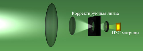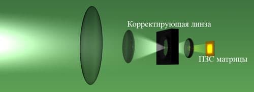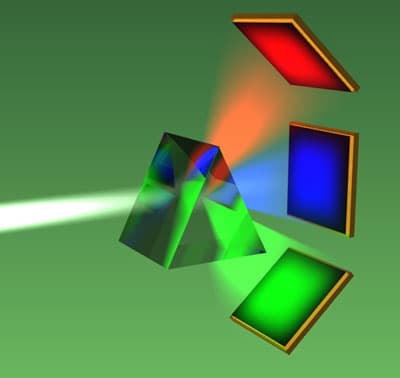 Система трех матриц использует специальную призму, которая разбивает поток света и направляет его на каждую из трех независимых RGB-матриц. Разрешение при этом составляет 1,12 млн. пикселей на каждую из них.