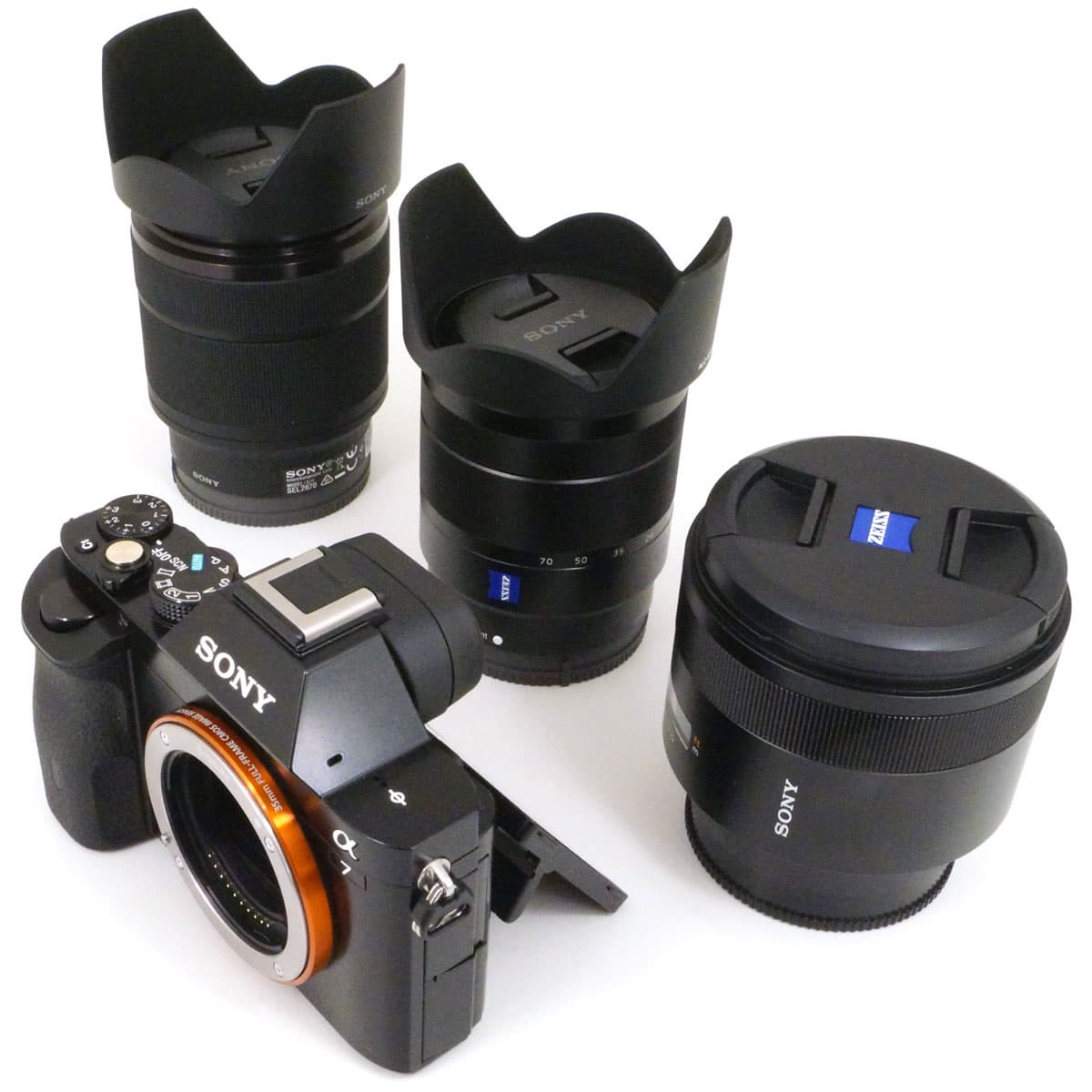 | Sony Alpha A7 body | Объектив SEL2870 | Объектив SEL1670Z | Объектив SAL50F14Z | Адаптер LA-EA4 |