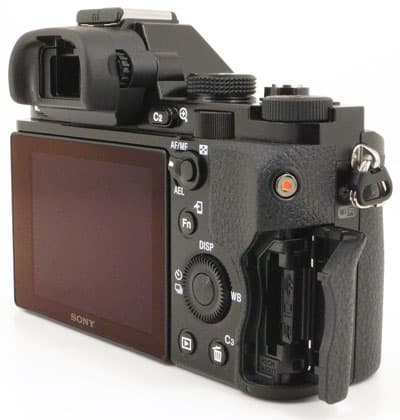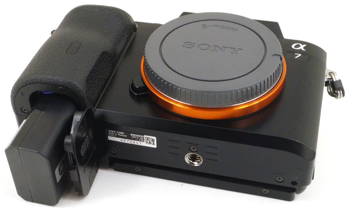 Батарейный отсек расположен в четырех сантиметрах от резьбового штативного отверстия. Таким образом, имеется возможность горячей замены не только карты памяти, но и аккумулятора без необходимости демонтировать установленный на штатив фотоаппарат.
