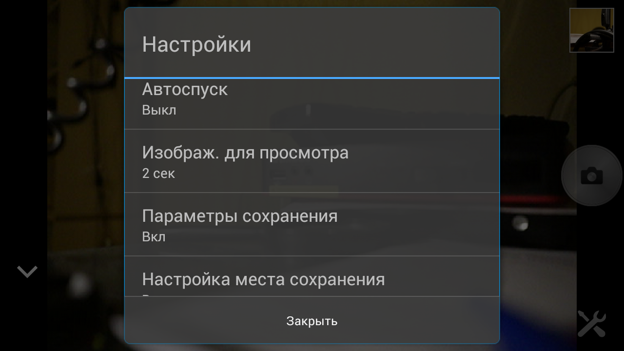 Все умения этого приложения сводятся к одной виртуальной кнопке, нажатие на которую приводит к созданию фотографии. Также здесь имеются настройки, состоящие из нескольких пунктов сомнительной полезности. Но следует отдать должное этому приложению — прямая трансляция видеопотока происходит почти без задержки.