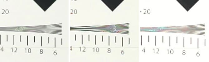 Первый и третий объективы показали вполне достойную для фотоаппарата детализацию, достигающую 900 условных линий по горизонтали и 800 линий по вертикали.