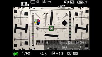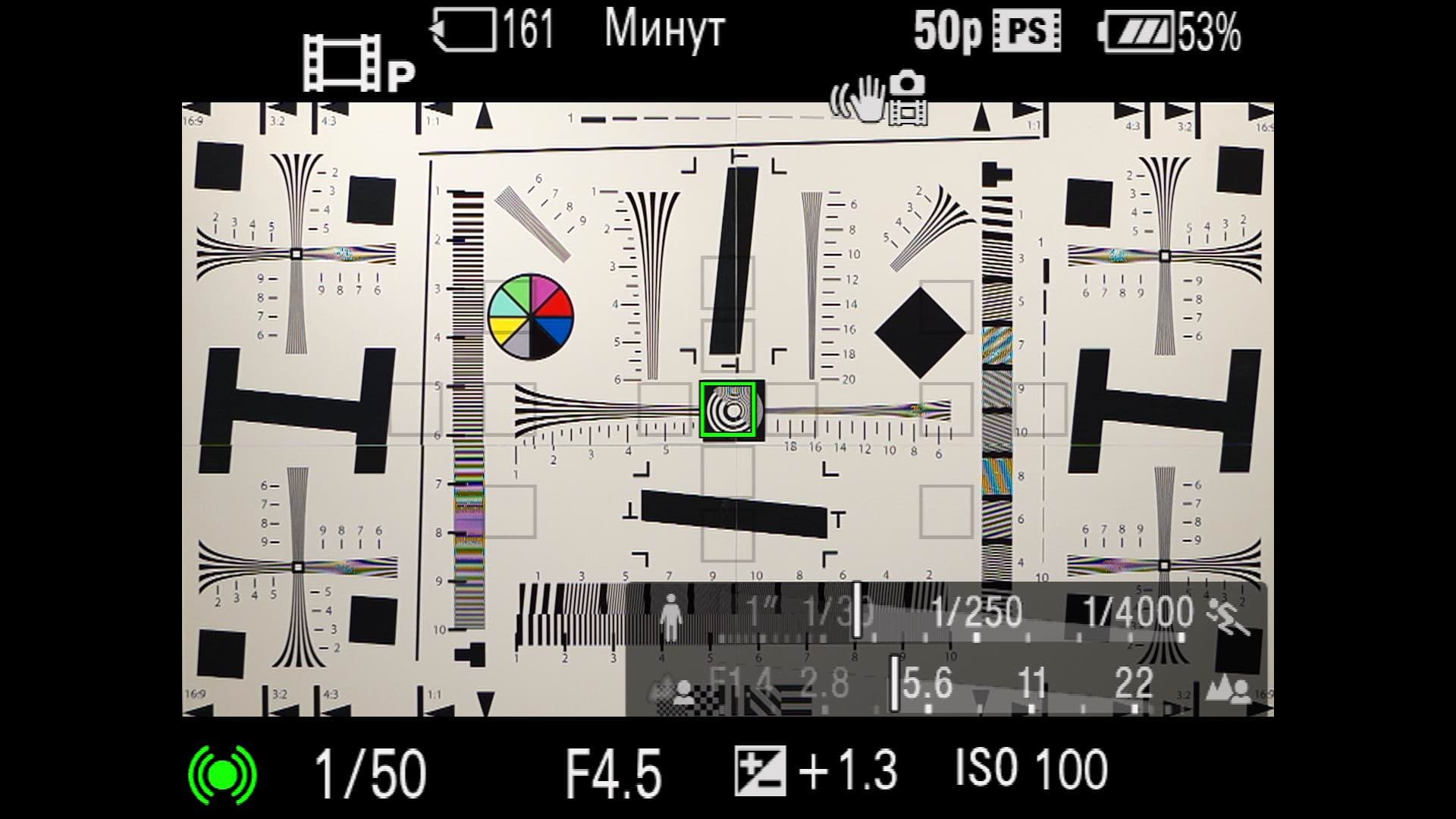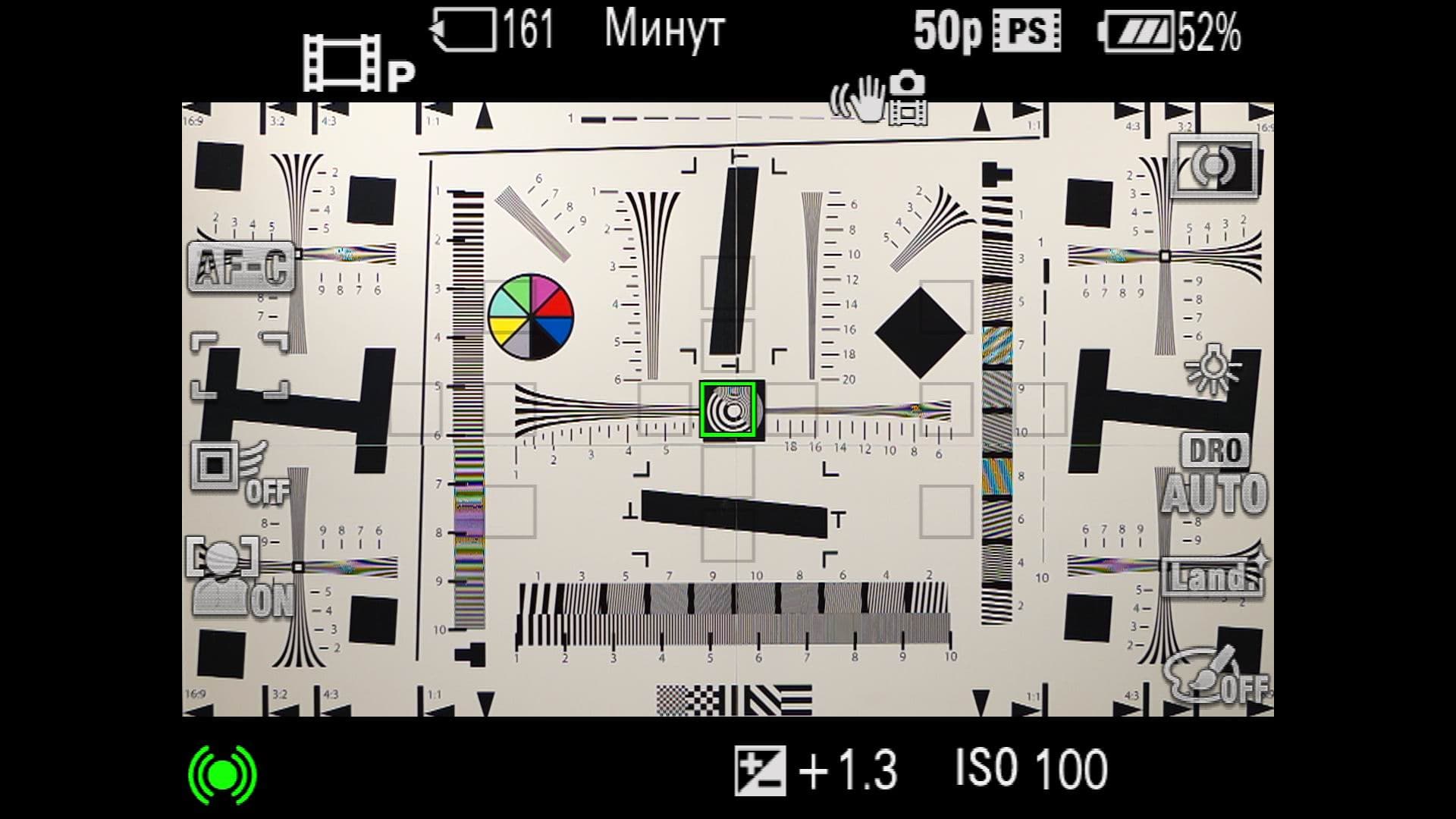Это обычный стоп-кадр, захваченный с HDMI-выхода рассматриваемой фотокамеры в режиме подключения 1920×1080. Ничего странного — уменьшенное в размерах видеоизображение, помещенное в центр черно-траурной рамочки вкупе со столь необходимой служебной информацией. Отображение этих рамочек с цифрами и символами отключить никак нельзя, разумеется. Так же, как нельзя получить чистый Full HD сигнал. Это ограничение известно многим китайским производителям накамерных мониторов: в таких мониторах имеется особый режим отображения, когда картинка с фотоаппарата увеличивается, и черная рамка с данными о параметрах съемки исчезает за границами экрана. Микроскопом по гвоздю.