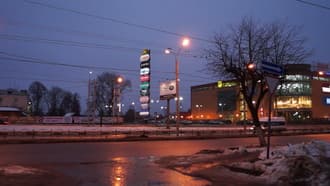 На вечернем шоссе мы также наблюдаем, как видеокамера спасовала перед фотоаппаратом. Съемка проводилась последовательно дважды, с автоматическими и ручными настройками, во втором случае фотоаппарат был переведен в режим «Ночная сцена».
