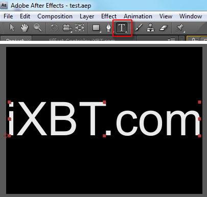 Теперь оставим в покое композицию Main, и создадим ещё одну композицию, где будет находиться собственно объект работы. Дадим ей название Text, поскольку анимировать мы станем титры. С помощью одноимённого инструмента напечатаем в окне композиции нужные буквы. При этом желательно, чтобы надпись полностью занимала весь кадр в ширину.