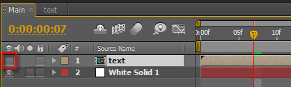Теперь следует отключить видимость этой композиции, чтобы текст не отображался в окне монитора. Сделать это просто — достаточно щелкнуть по иконке с изображением открытого глаза: