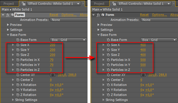 Всё верно. Ведь в окне монитора отображается не сам логотип, а его отражение, обработанное плагином Trapcode Form. А на зеркало, как известно, пенять не принято. Давайте исправим ситуацию, внесем несколько корректировок. Активируйте наш основной слой с эффектом Form, и зайдите в настройки эффекта.